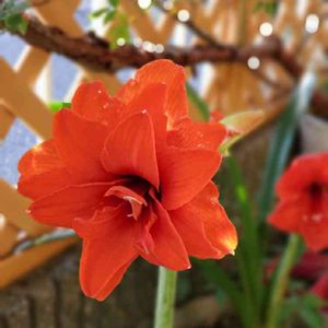 八重咲きのアマリリス🎵 後ろの兄弟なのにこの子は突然変異⁉️進化⁉️ 見応えがありますね(*^^*)