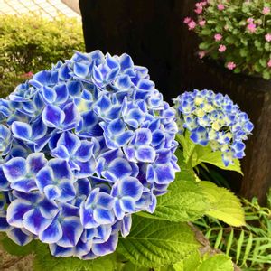 (*´艸`*)ムフ♡ この色、この色( ◜௰◝و(و "♪ 地植えにした紫陽花が、 年々赤くなって、今では真っピンクに😩 もう一度購入した頃の色が見たくて、 昨年挿し木にして、 ブルーベリー用の土に植えてみたよ🤗 地植えも1度掘り起こして ブルーベリー用の土に入れ替えたら、 青で咲いてくれるんかなぁ〜🙄