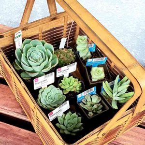実家に帰るついでに、多肉狩り💡 息子に、『実家に帰るのが、ついでで、多肉狩りが目的でしょ?』と突っ込まれ。笑 ごもっともです🙇 JAで、七福神。オブツーサ。 DAISOで、マッコス。星の王子?。クラッスラ。エケベリア2種類。チタノプシス属天女。 天女はキモカワですね。カリフラワーを連想してしまいます😆 全部で1400円程。 格安大量GETです💖