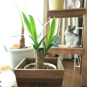 ユッカちゃん* 自分への お誕生日祝いで購入しました。 買ってきてすぐ 植え替えしましたが すぐに新芽ちゃんが出て ぐんぐん成長してます。 鉢カバーはニトリ ウサギさんはカインズ