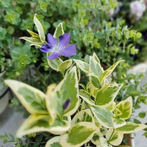 我が家のツルニチニチソウ🌿 去年から育ててますが、初めて咲いてくれました💜 後ろのオレガノケントビューティさんは、今年も順調にワッサワサです🌿🌿🌿