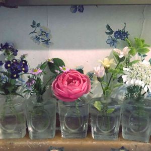 洗面化粧台の空間に、使い終わったディオールの香水瓶を1輪刺しにして並べてみました。🌹