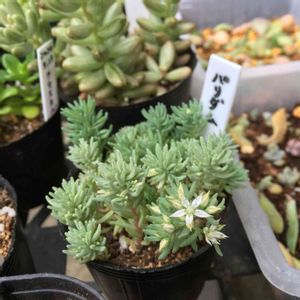 多肉Garden*Grow さんの 1Day 販売会に行ってきました〜♪ 取り置きしてもらってた多肉ちゃんを受け取りに行くから、朝イチではなく終わりごろに行ってきました。 外出自粛などで色んなイベントが中止になって、待ちに待った直接購入が出来るんですもん! 午前中からたくさんのお客さんが来られたそうですよ(°▽°) ・姫星美人 ・クリスマスイブ ・スイレン の3つを受け取り 「小人の祭りが欲しいんやけど、なかなか見かけんのやって〜」 と、話すと 「養生コーナーにあるわ〜」 って、裏手に行って持ってきてくれました。 その間、並んでいる多肉ちゃんを物色してたら めちゃくちゃ格好いい小人の祭りを持ってくるmayulyさん。 私「カッコいいーーーっ‼︎」 マ「値段(ちょっと)高いけど…」 私(しばし考える…)「買うっ‼︎」 マ「枯らさんといてやー」 私「やばそうになったら持っていく」 家に帰ってからネットで調べたら 小人の祭りの栽培難易度が結構高め(°_°;) ここまで復活した子なので、頑張りますっᕦ(ò_óˇ)ᕤ やっぱり直接見て買えるのっていいですね〜。 たまたま知ってる人に会えたり、こっちはこんなの〜 これはこんなの〜 これはこうすればいいよ! って教えてももらえるし、やっぱりいいわぁ〜