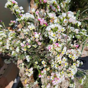 ワックスフラワー「ブライダルパール」 白で咲いてゆっくりピンクに色が移りゆく👏