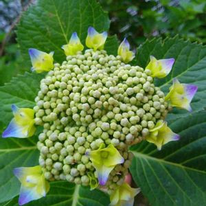 6/1㈪⑦ 🏷青い紫陽花前線2020 5/21〜6/1神奈川県横浜市郊外 投稿3回目 額紫陽花が色づいてましたが、まだ小さな花です。 去年は結構大きくなり、薄紫色になりました。 マンションの庭に咲いて居ます。