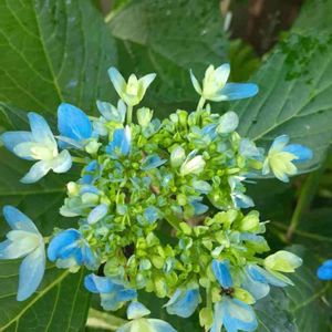 こんにちは😃 🏷️青い紫陽花前線2020 ガクアジサイ 千代女 2回目 撮影場所 愛媛県西条市 撮影日 6月 3日 色づいてきました🎵 が これから濃い青色になるか ドキドキです👀