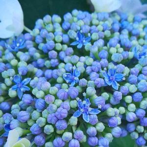 おはようございます😊 ガクアジサイ(額紫陽花)の ツブツブ💙💜💙 開花すると ブルー💙の星に( *˙0˙*) ☆☆ 吸い込まれそう~💙 おさんぽコースにて🚶♀️🐾 🏷️青い紫陽花最前線2020 番外編 朝から肌に陽射しがチリチリ💦 今日も心穏やかに過ごせますように🤗☆