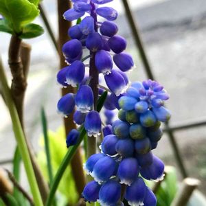 ムスカリ ここは紫陽花の大鉢の中 紫陽花の葉っぱが傘になってくれています。 実はフリージアやハナニラも咲いています。 今日は青いムスカリさんが主役です💙 🏷美しく青きドヨウ 🏷春色の青い花2023 🏷(祝)チーム・ブルー3周年