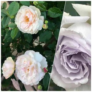 ミニバラ グランブルー 本当は右のようなお色です(20.12pic) 今咲いている子たちはアイボリーに薄らピンク💗 本当に同じ子なのか、ラベルを確認しました(笑) 季節と共に色が変わるバラさんって、 ファンタッスティック•*¨*•.¸¸☆*・゚ 🏷金曜ローズショー