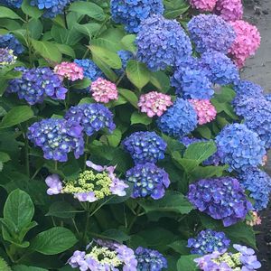 紫陽花って不思議💙💜💗 全部ブルーの紫陽花を植えたはずなのに、 今年はピンクの子もいます。 土も一緒なのに、不思議です(⸝⸝ᵕᴗᵕ⸝⸝)♡