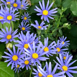 ブルーデージー 小さかった苗が今は60cm以上にもなって、 ひょろひょろ〜 バラ鉢の隙間で咲いています♡ 大好きな青いお花です💙💛💙 🏷美しく青きドヨウ