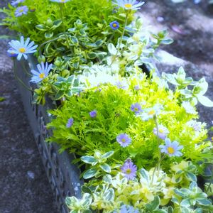 今日のお花、Forget-me-not。 ながれのきしのひともとは、 みそらのいろのみづあさぎ、 なみ、ことごとく、くちづけし はた、ことごとく、わすれゆく ("Vergismeinnicht" 訳・上田敏) 来年の春も忘れずに出てきてね。 ②はアルメリアの後ろに ミオソティス ミオマルク。