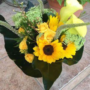 今咲いているお花が💐ピンク、パープル、赤なのでこのビタミンカラーは、刺激的😄 久しぶりのお店で素敵なブーケの作成中に遭遇💐無理をお願いして購入💕 さっそく、彼の元にお届け💕