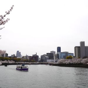 大川の桜🌸 造幣局の通り抜けが有名ですが、横を流れる大川の両岸には4800本もの桜が植えられていて、上流の毛馬洗堰から下流の天満橋まで4.2kmに渡る遊歩道が整備されています😉 まさに桜🌸のトンネルですね😊 川からの花見船「ポンポン船」が大人気です😃