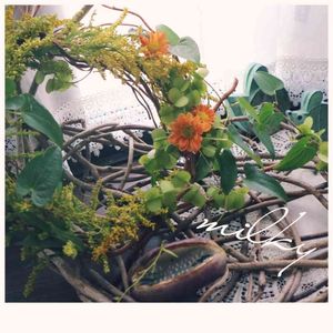 おはようございます 昨日見つけた秋でリース セイタカアワダチソウ 咲く前の淡い黄緑の草原から