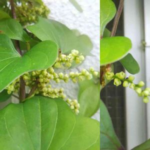 何年か育てている山芋にお花がつきました。 ムカゴを食べたくて育てていますが、収穫の頃に、誰かにぜーんぶ持っていかれると言うオチです(涙)あ~あ。