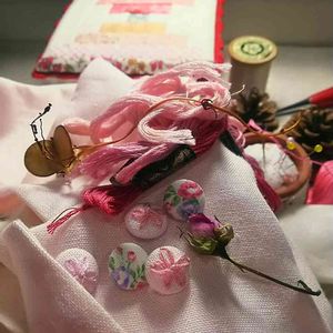 リネンのオーバーシャツを制作 終盤戦 できあがるころには、冬だよ(T_T) ラストは ボタン付け くるみボタンにしたら、というアドバイスで 作ってみたけど、迷う~ 共布に刺繍 見返しに使ったプリント地 どちらにしようかな 好き過ぎて使えない ピンク色の刺繍糸たち