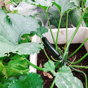 どどーん🎶 このスペースでズッキーニが出来ました🙌 苗を購入した時点で花が咲いていて、雌花が2つダメになり… それでも、この1本出来ている事が嬉しいのです😆
