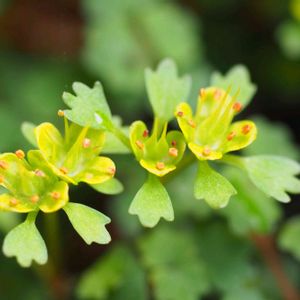 キバナハナネコノメ咲いています。東海地方を中心に分布する、ハナネコノメの変種です。 山梨県にも分布しますが、個体数は極めて少なく、希少な花となります。