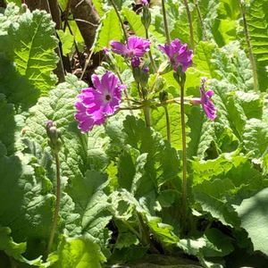 白いのはサクラソウ? 奥のピンクは蕾をつけ始めたクリンソウでーす。