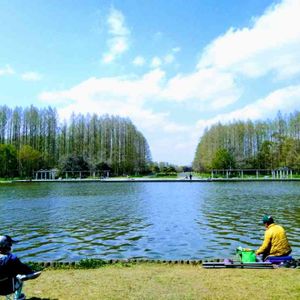 みさと公園から、水元公園を撮りました。メタセコイヤの新芽が、出てきたのが、分かります。 今日は温かく、風もなく、釣り🎣日和のようで、所々で見かけました。