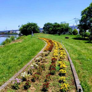 みさと公園の隣の公園です。 青い空、花壇のお花 迚も、綺麗でした。