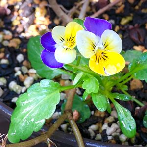隣りに並べていたスーパーベルレモンスライスの鉢で、突然花開いたパンジー🌱