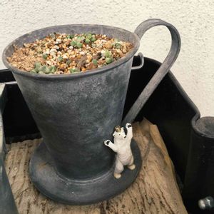 植え替え大作戦の結果① ずっと気になってたブリキポット、ワイヤープランツ植えてみたらピッタリでした❤︎ 左のフォトフレーム風には何植えようかな(о´∀`о) ワイヤープランツに似てて、でもちょっと違う何かかわいいもの探そうかな❤︎