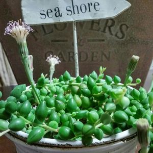 名無しのエケベリアさんから、花芽が〰p(*^-^*)q 紫麗殿の横から、ルビーネックレスが顔出してきたわ(^-^*)ウフフ