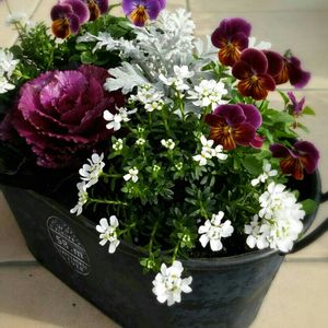 黒ビオラ × 黒ハボタン シルキーパール 光子と真逆のマットな感じ😊💕 白のアリッサムとプラチーナと一緒に(^^)人(^^)