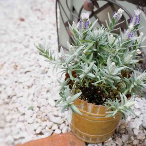 フレンチラベンダーだんだん咲いてきてワクワク(*^^*) このマドレーヌ型モチーフのブリキポット、可愛いのですが底穴がないので缶切りで無理やり開けてます💦 切り口から錆びてこないかしら・・・