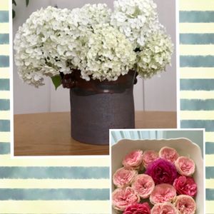 アナベルさん、強風と梅雨入りで折れてしまうので、一部カットしました。 とりあえず、自作のワインクーラーにイン! カットしたパシュミナをサラダボールに浮かばせてみました。