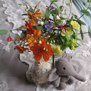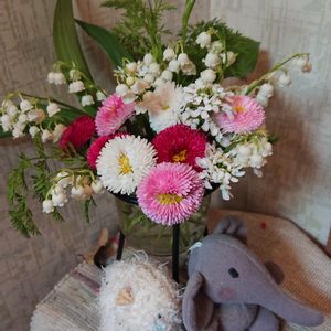 2019 5月 今日のお花🌼すずらん 一株がいつの間にか家の脇に増えました😊🍀 匂いがとっても良いです💕 なかよしの二人🐥&🐘