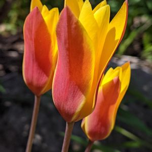 おひさまいっぱい良い天気🌞✨ 洗濯物がスッキリ乾くとうれしいな(>ω<)♪ 🏠のミニ花壇のチューリップ🧡💛4/10撮影 大好きな元気色♪ 今年も咲いてくれた(*´︶`*)アリガトウ♡