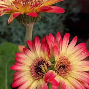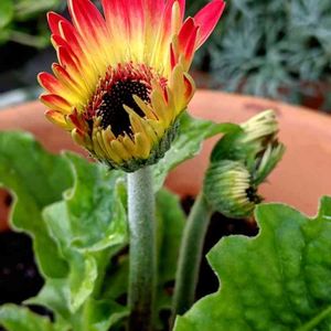 もうすぐ開花のガーベラ💛❤ お隣に一本の茎からつぼみが 2つのコが😌 仲良く咲いてくれるかな💞