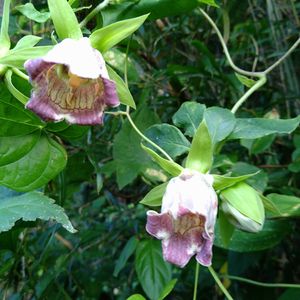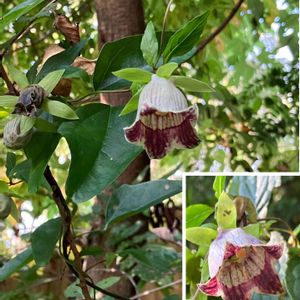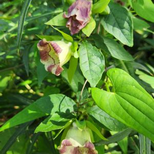 まさか近隣で見られるなんて🎶 山裾の林に中に、うっすらとピンクがかったものが見えたので、草むらの蛇に気を付けながら近づいてみたら、ツルニンジンのお花でした🥀 5つの萼片がピンと反り返って、なかなか個性のあるお花ですね🤗