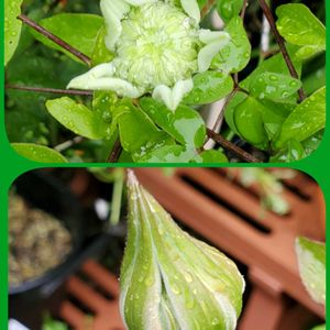 クレマチス 白万重は開き出しましたし大河ももうすぐ弾けそうです✨ ど根性ミニバラ🌹はだめかもとおもっていましたが、沢山蕾を付けました~🎶 今年2年目のスカシユリにも蕾が付いています🎵 楽しみです🎵