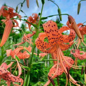 ユリ ユリ科属 庭で育つと オレンジの芯に 表情があって~ 親子で愉しい 会話しているようで···