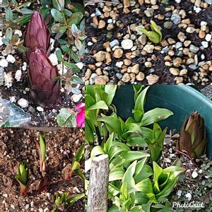 ゆりちゃんの、花芽を、みつけました。 左上 ロビーナ 左下 かのこゆり 右上 クロユリ 右下 カサブランカ お花ちゃんが、楽しみ😆✨
