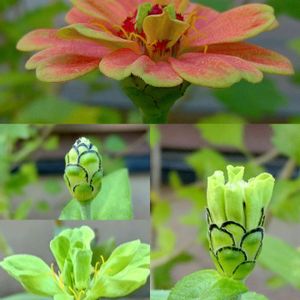 百日草 クイーン(ジニア)💚✨ ポツポツと咲いてるけど八重咲きでないので栄養不足かな😂 横顔もいい感じ(自己満足😂)