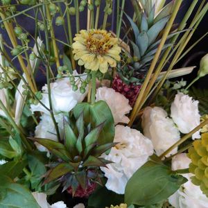 先程のアレンジメントのアップです。 🍍が生けてあります😂 夏らしいです🎵