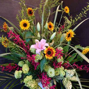 先程のアレンジメントの🌻とゆりをアップで、📸しました🎵 🌻が、かわいい💛