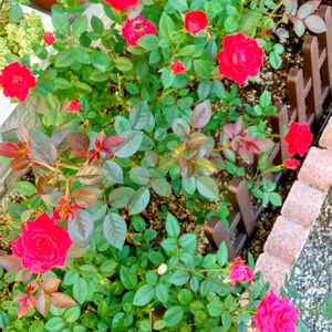おはようございます🙇 図書館前の花壇のミニバラが元気に咲いていました👍️ 🏷️真っ赤な火曜日 いい日でありますように😃