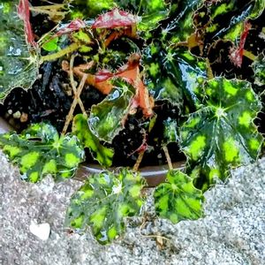 おはようございます🙇(⌒0⌒)/~~ 梅雨時に小さい株を分けて頂きました🍀ベゴニアです🍀 根付いてくれました👍️ 葉っぱがステキ‼️ですワア~❤️ いい日でありますように😃