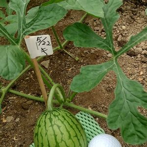 おはようございます🙇 スイカさん🎵少しずつ大きくなってきました👍️ 22日に授粉した黄色いのです🍀無事に育ってちょうだいませませ~❤️ いい日でありますように🙇