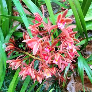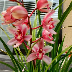 おはようございます🙇 地植えのシンビジウムです🍀 今年はこのお花が10本咲いてくれてにぎやかです🍀 いい日でありますように😃