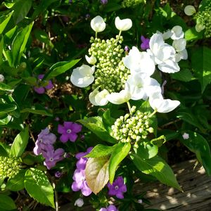 おはようございます🙇 アジサイが咲いてきました👍️ 我が家で一番先に喜ばせて暮れる品種⁉️です 一緒にいる。のはニオイバンマツリ🍀(^○^)です いい日でありますように🍀