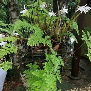 おはようございます🙇 庭のシダとコデマリをダイニングテーブルに🍀爽やかです🍀 いい日でありますように💞 🏷️金曜日の蕾たち