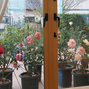 おはようございます〜♬ 朝からリビングのカーテンを開けると おはよう💕って言っているような バラたち🌹🌹🌹 まだ蕾もあります♡ 今週は暖かくなるようです 開いてくれるかなぁ〜(ღ′◡︎‵)