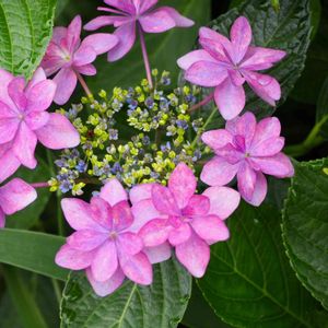 おはようございます〜♪ 💠ガクアジサイ💠 ピンク色の萼の中央に小さな青い花💠 今日も雨☔️ 穏やかな一日になりますように 。・:*:・゚’ฺ☂ฺ︎(。・ˇ∀︎ˇ・)ノ ○︎o。+..:*